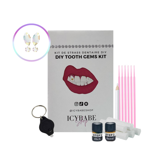 Our 'ICYGEMZ - DIY Tooth gems kit' allows you to apply 5 temporary dental rhinestones at home for a duration of 2 weeks minimum! Brighten up your smile from home without breaking the bank and without danger. Ideal for temporary installation or to try out your design before having it professionally installed! We use the same precious stones and the same dental materials as a professional! Our products can be stored allowing several applications of gems!